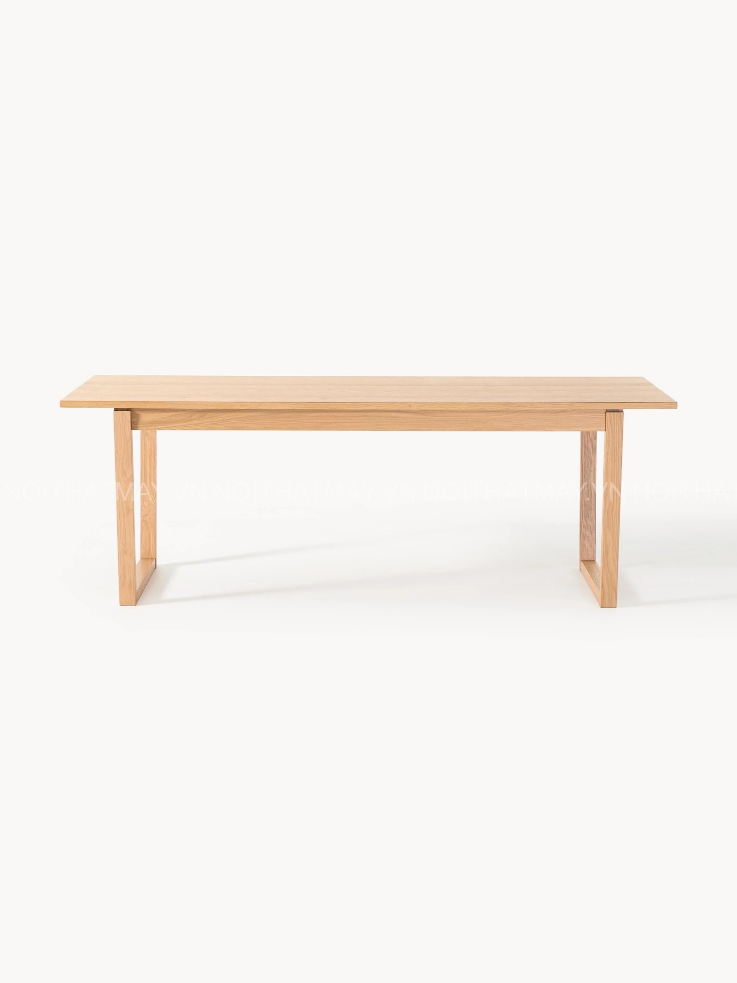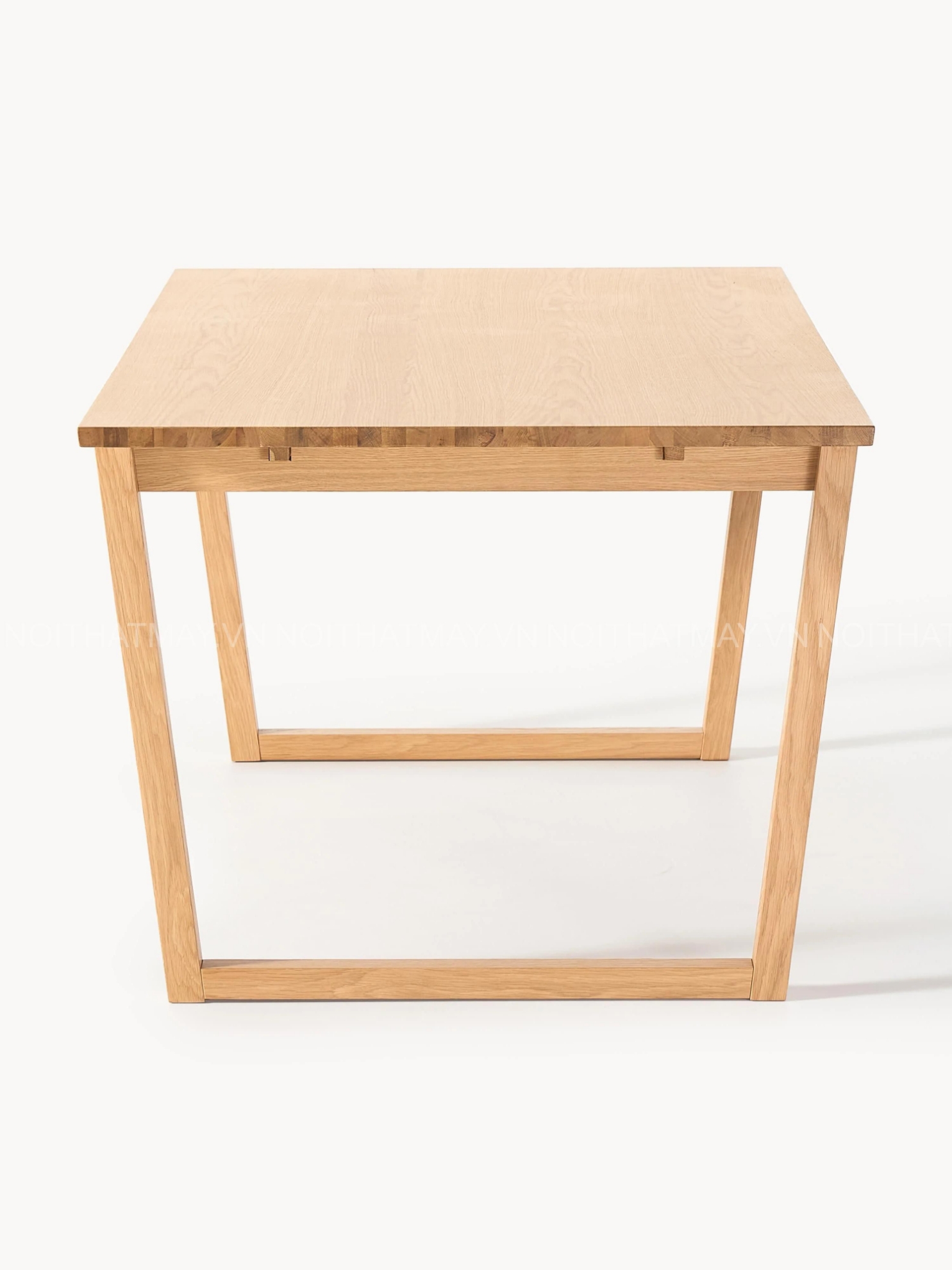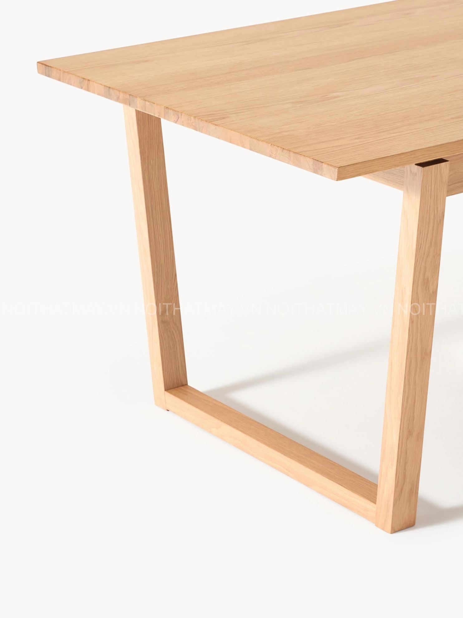 Mặt bàn được chế tác từ gỗ Sồi (Oak) tự nhiên tuyển chọn, nổi bật với những đường vân gỗ sắc nét và uốn lượn tràn đầy sức sống. Gỗ Sồi tại Noithatmay.vn luôn được xử lý qua quy trình tẩm sấy nghiêm ngặt, bề mặt hoàn thiện mịn màng, giúp chống thấm và giữ được tông màu tự nhiên sang trọng, mang lại cảm giác dễ chịu khi chạm vào.