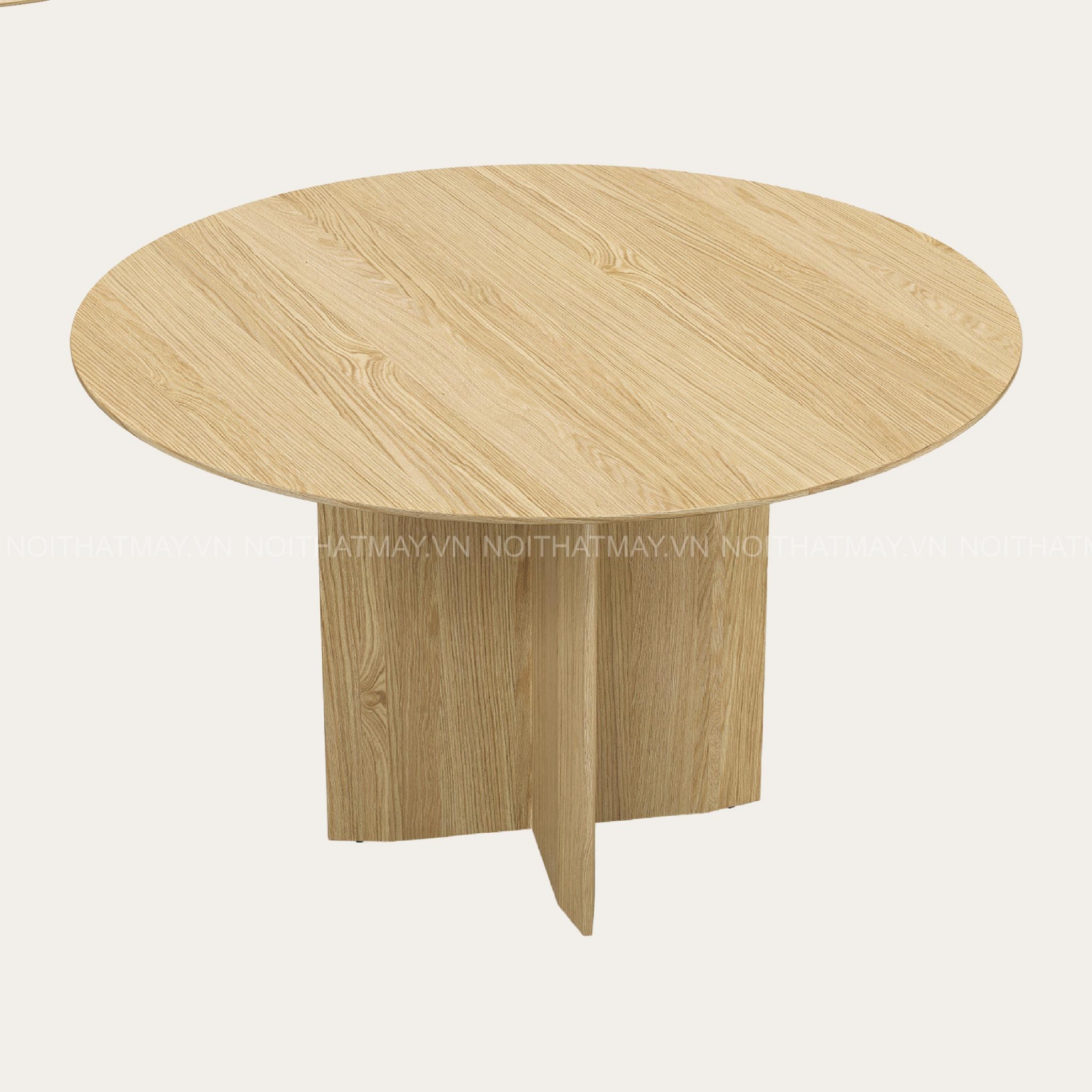 Mặt bàn được chế tác từ gỗ Sồi (Oak) tự nhiên tuyển chọn, nổi bật với những đường vân gỗ sắc nét và uốn lượn tràn đầy sức sống. Gỗ Sồi tại Noithatmay.vn đã qua quy trình tẩm sấy tiêu chuẩn cao, bề mặt được xử lý mịn màng và phủ lớp bảo vệ cao cấp. Điều này không chỉ giúp chống thấm nước, chống mối mọt mà còn tôn vinh trọn vẹn tông màu tự nhiên sang trọng của gỗ.