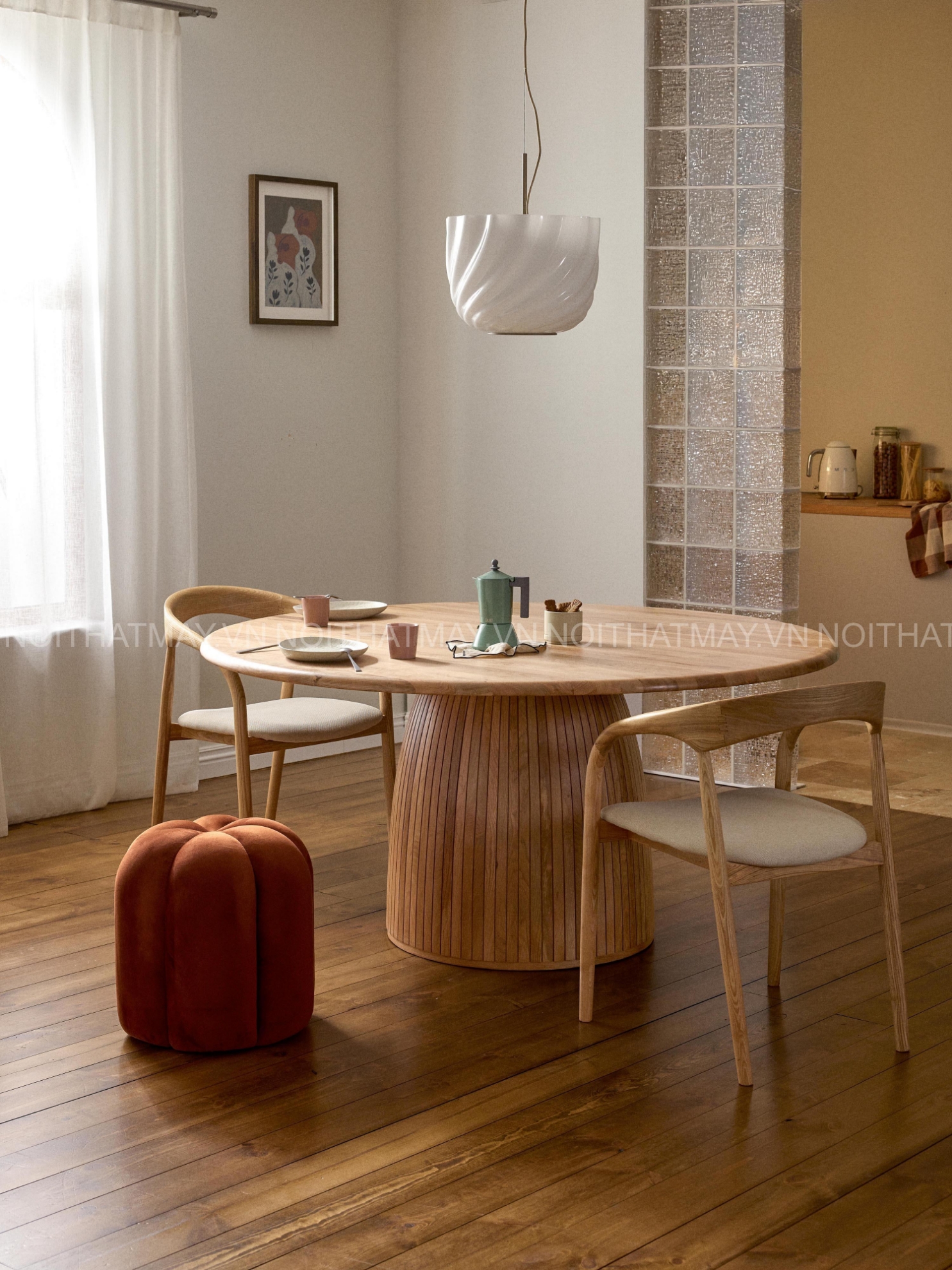 Nếu bạn đã quá quen thuộc với những mẫu bàn ăn chân trụ truyền thống, Bàn ăn Nelly sẽ là một làn gió mới đầy ấn tượng cho ngôi nhà của bạn. Với sự kết hợp hoàn hảo giữa nét mộc mạc của gỗ Sồi và ngôn ngữ thiết kế chân nan độc đáo, Nelly không chỉ là một chiếc bàn ăn mà còn là món đồ nội thất làm bừng sáng cả không gian bếp.