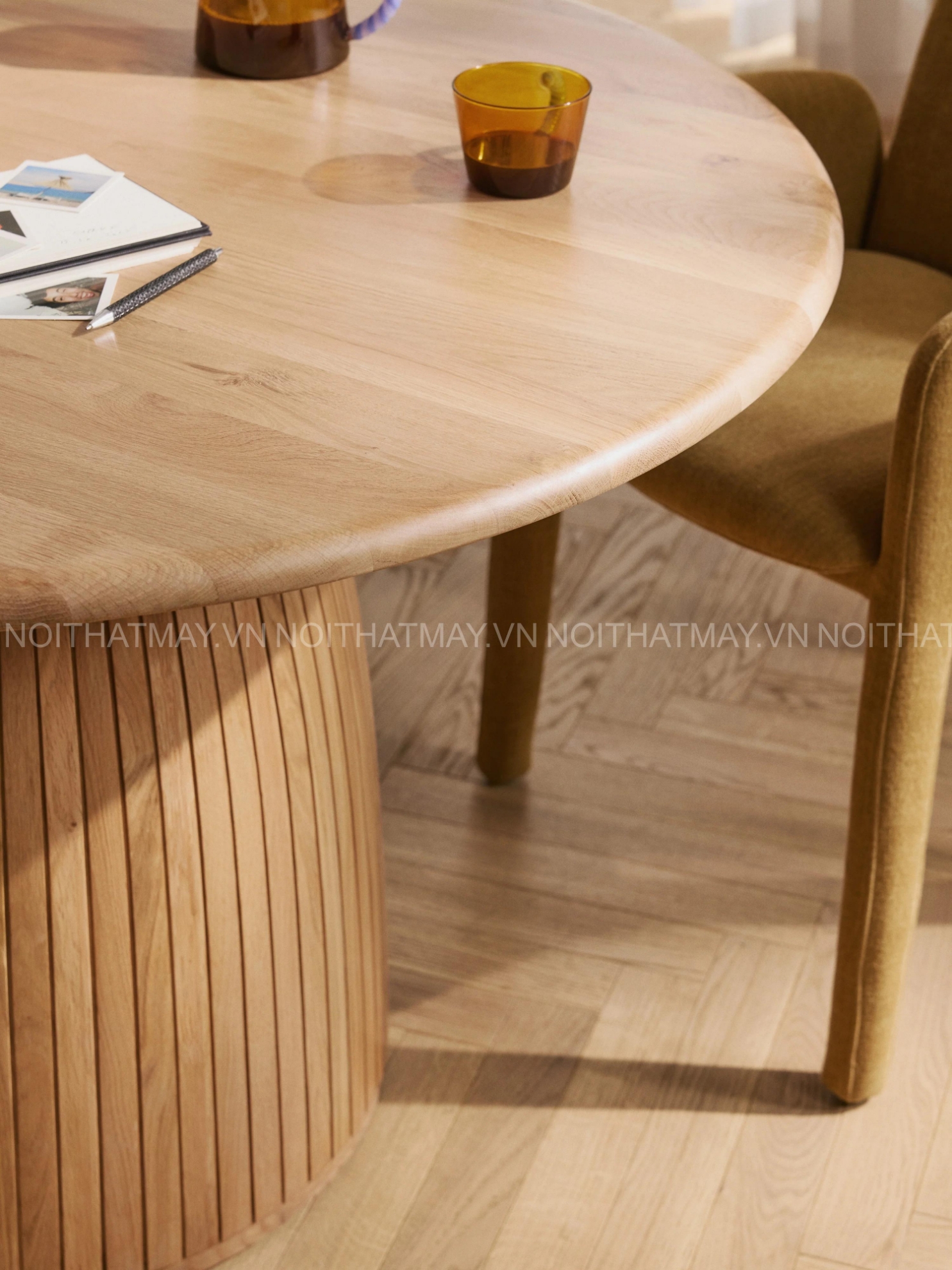 • Thiết kế chân nan: Các thanh gỗ sồi được tiện tròn và sắp xếp song song tạo thành hệ nan đối xứng tinh tế, mang lại cảm giác thanh thoát và uyển chuyển.