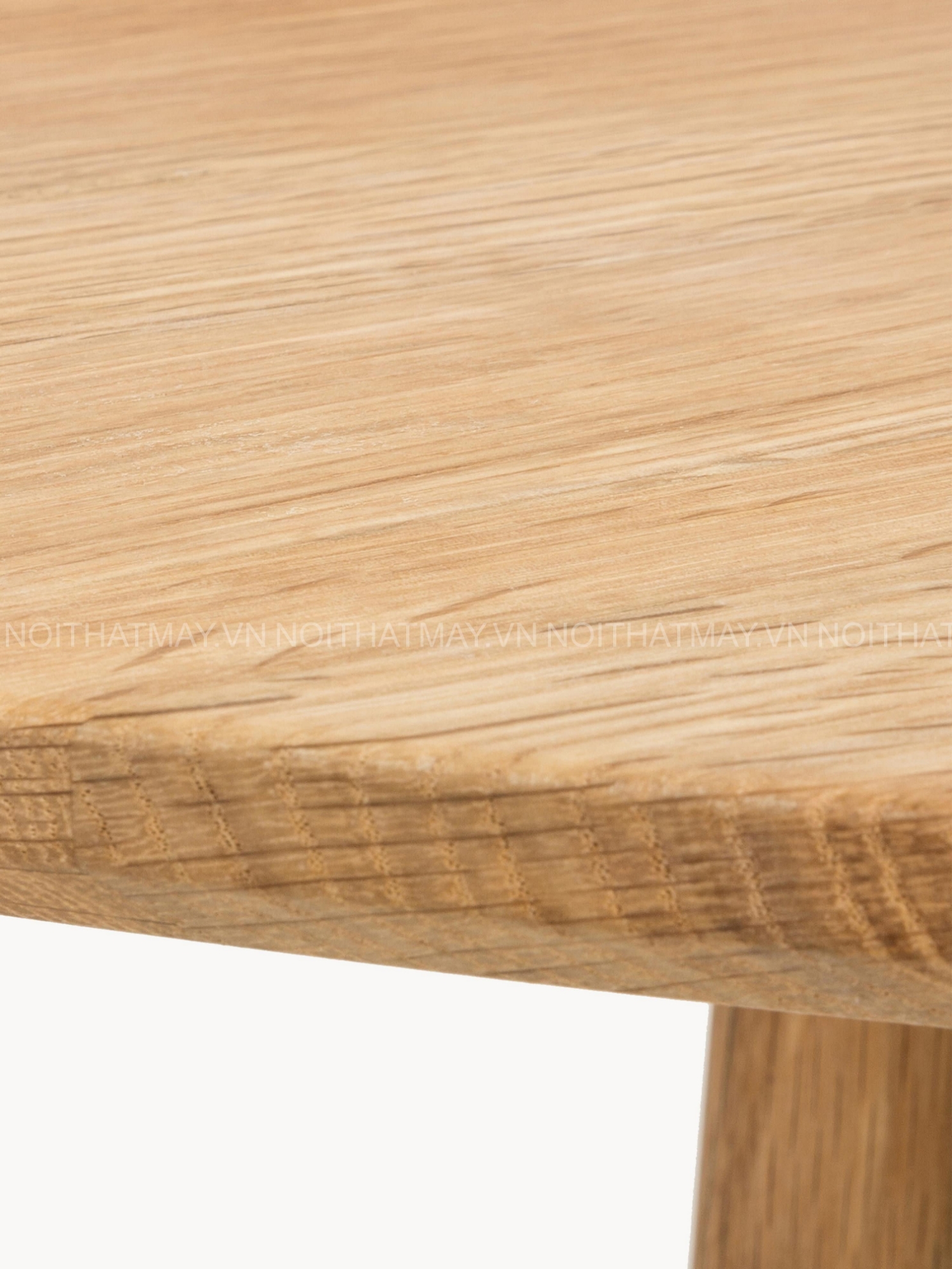 1. Chất liệu gỗ Sồi tự nhiên – Vẻ đẹp bền bỉ theo năm tháng Mặt bàn được chế tác từ gỗ Sồi (Oak) tự nhiên tuyển chọn, nổi bật với những đường vân gỗ sắc nét và uốn lượn tràn đầy sức sống. Bề mặt gỗ sồi không chỉ mang lại hơi ấm cho gian bếp mà còn được xử lý kỹ lưỡng để chống thấm, chống mối mọt, giúp sản phẩm giữ vững giá trị thẩm mỹ và độ bền qua nhiều thập kỷ sử dụng.