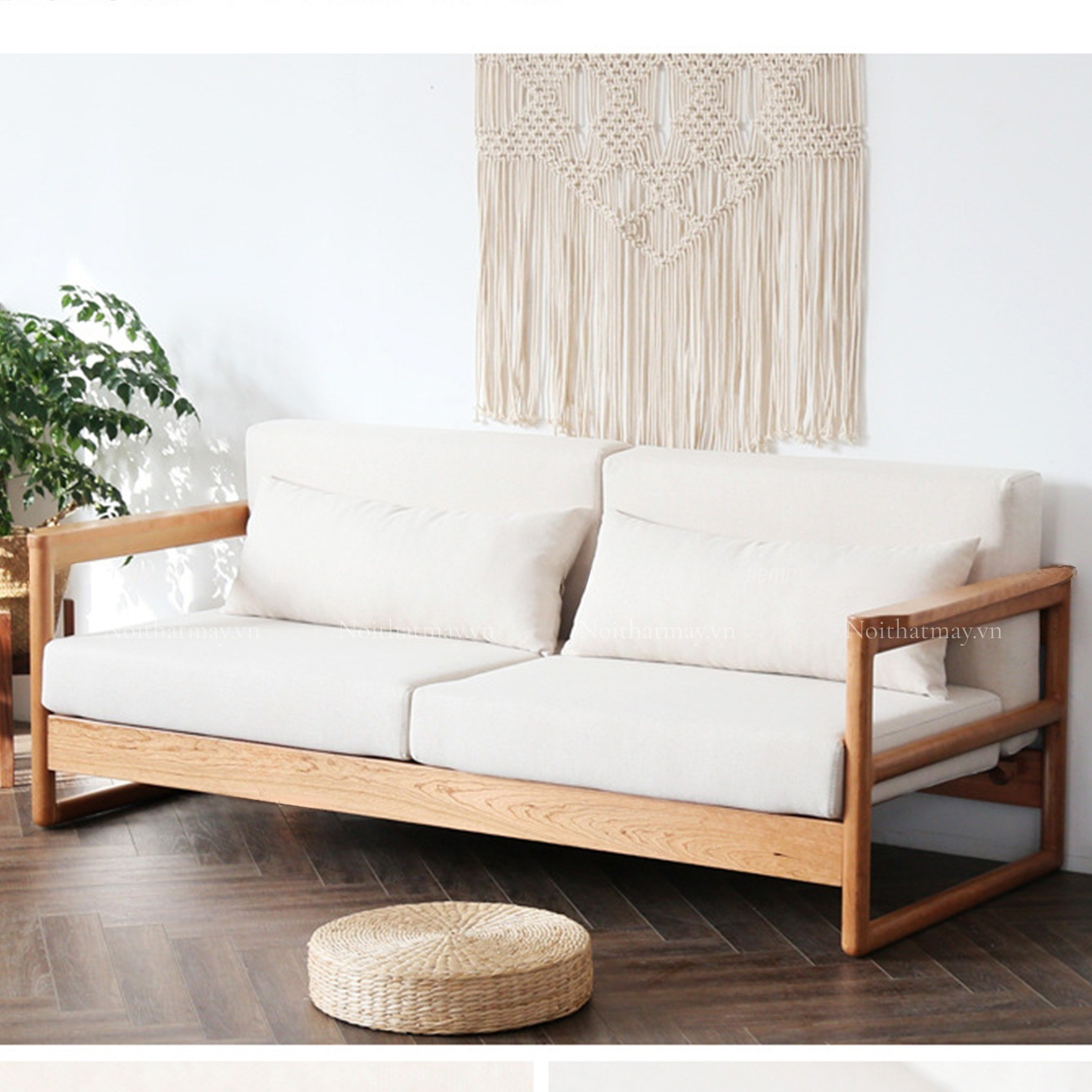 Khung ghế được chế tác từ gỗ Sồi (Oak) tự nhiên với hệ vân gỗ lớn, đều và đẹp mắt. Gỗ đã qua quy trình tẩm sấy nghiêm ngặt giúp chống cong vênh, co ngót. Hệ nệm sử dụng mút bọc vải hoặc da cao cấp với độ đàn hồi tiêu chuẩn, đảm bảo cảm giác êm ái tuyệt vời và giữ được độ căng phẳng sau thời gian dài sử dụng.