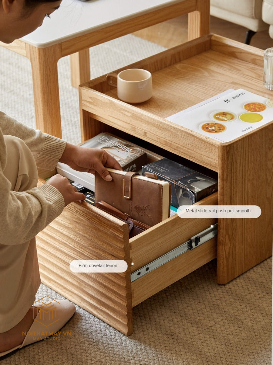 Bàn trà MODULAR được làm từ gỗ tự nhiên kết hợp bề mặt hoàn thiện tỉ mỉ, chống trầy xước và cong vênh. Tông màu gỗ sáng hài hòa, vân gỗ mộc mạc mang lại cảm giác gần gũi, ấm cúng và tinh tế.